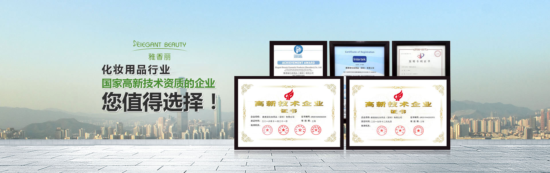 占地面積一萬余平方米,專業(yè)技術(shù)員工300余人,雅香麗憑借著在行業(yè)內(nèi)的專業(yè)化、精細化、特色化、新穎化、可持續(xù)化,榮獲國家"高新技術(shù)企業(yè)"、"深圳市專精特新中小企業(yè)"等重量級認證。